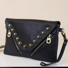 朋克欧美复古款古铜铆钉女士手包手拿信封油蜡牛皮真皮斜跨包女包