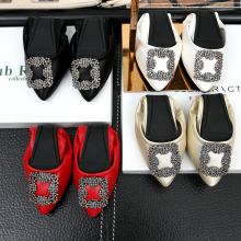 尖头铆钉平底豆豆鞋真皮单鞋方扣平跟女鞋2017春季浅口蛋卷鞋 潮