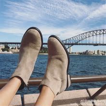 短靴女秋冬季2017新款中跟马丁靴林珊珊同款粗跟圆头绒面女靴子潮