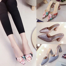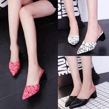 2017欧美时尚外穿性感粗跟凉拖鞋女尖头拖鞋包头半拖女中跟懒人拖