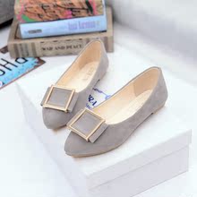 2017春季韩版平底平跟单鞋女鞋 舒适休闲圆头绒面浅口低帮工作鞋