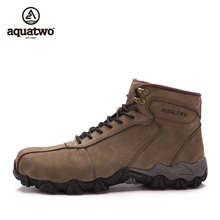 Aquatwo/跨途户外头层牛皮防水透气徒步高帮保暖登山鞋休闲男靴