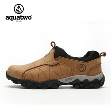 Aquatwo/跨途 春秋男士徒步鞋户外休闲头层牛皮防撞耐磨套脚男鞋
