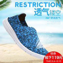 夏季网鞋男女镂空透气网面鞋编织鞋男休闲鞋懒人一脚蹬乐福鞋情侣