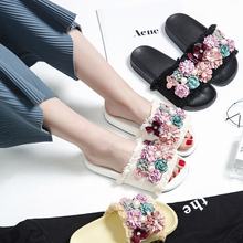 凉拖鞋女夏时尚外穿2017新款松糕厚底百搭韩版甜美串珠平底拖鞋潮