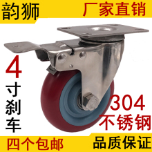4寸304不锈钢脚轮万向轮带刹车聚氨酯脚轮万向轮防水防锈防腐蚀