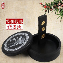 特价4寸学生砚台 带盖原石墨池文房四宝 毛笔墨块墨汁专用圆池
