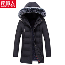南极人冬季男士中长款可拆卸狐狸毛条羽绒服韩版连帽外套时尚加厚