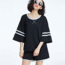 加肥加大码女装夏装胖妹妹短裤休闲运动套装200斤胖MM短袖两件套