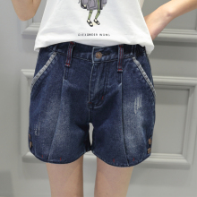 2017夏季加肥加大码女装胖mm显瘦宽松休闲牛仔短裤哈伦短裤女热裤