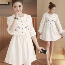 孕妇装春秋款孕妇裙 定位绣花孕妇衬衫韩版裙子可调节孕妇连衣裙
