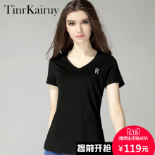 t恤女短袖夏装2017新款女装大码韩版半袖黑色体恤V领修身小衫上衣