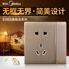 美的五孔带一开单控开关 86型插座面板香槟金墙壁开关电源插座