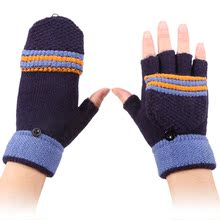 男女半指手套毛线韩版针织翻盖上网秋冬防寒保暖学生写字露指手套
