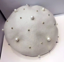 秋冬手工珍珠羊毛贝雷帽 针织毛线帽 韩版女士帽子保暖画家帽