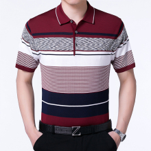 夏装短袖t恤男士宽松翻领半袖体恤衫条纹中年 男装夏季薄款