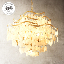 现代美式复古地中海创意客厅灯餐厅灯卧室灯贝壳水晶吊吸两用灯