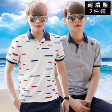 【2件装】夏季翻领男士短袖T恤 青少年男装上衣韩版polo衫潮衣服