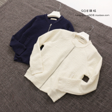 日本单压花设计长袖花纹简约风格棒球衫小外套短外套开衫2015秋女