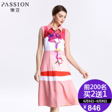 钡萱2016夏季 简约翻领时尚拼接无袖印花连衣裙A字裙 S61193G