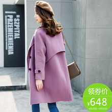 2017春装新款双排扣修身中长款双面呢大衣韩版羊毛气质毛呢子外套