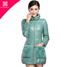 真皮羽绒服女带帽中长款狐狸毛领皮羽绒韩版修身新款海宁皮衣特价