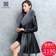 2017冬新款韩版女绵羊皮狐狸毛领修身中长款外套海宁大码真皮皮衣