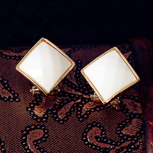 气质百搭时尚日韩国耳饰耳环简约方形菱形几何耳钉女学生耳白色