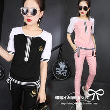 2017夏装新款休闲时尚套装女小香风纯棉短袖拼色显瘦上衣两件套潮