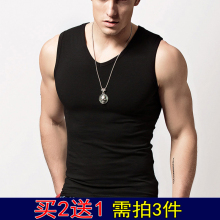 夏季男士宽肩背心修身型纯色紧身纯棉无袖砍袖健身运动打底背心潮