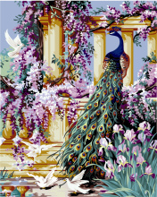 diy数字油画 手绘油彩填色客厅玄关大幅风景动物装饰画 60*90孔雀
