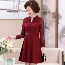 中老年女装春装蕾丝连衣裙中年大码妈妈装40-50岁中长款打底裙子