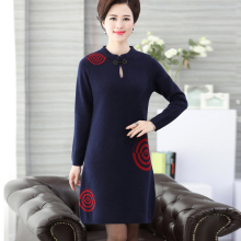 中老年女装中长款旗袍中年人妈妈装大码2016秋装针织衫羊毛连衣裙