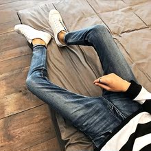 夏季男士牛仔裤四季复古小脚裤男生弹力休闲长裤裤子男韩版修身潮