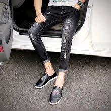 2016秋季新款九分牛仔裤男破洞青少年学生薄款小脚修身九分裤潮