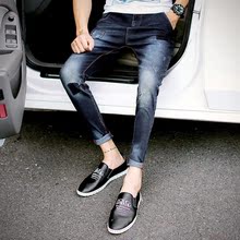 春夏季牛仔九分裤男青少年修身型韩版弹力小脚休闲9分裤子男学生