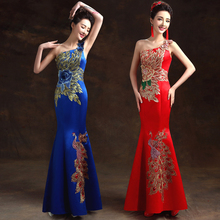 晚礼服2016新款敬酒服新娘结婚红色修身显瘦长款宴会主持人礼服女