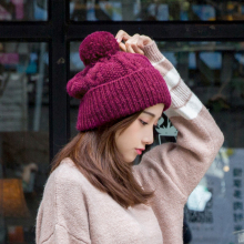 新款原创 纯手工毛线帽子 女 冬季 韩国保暖针织帽 大球可爱女帽