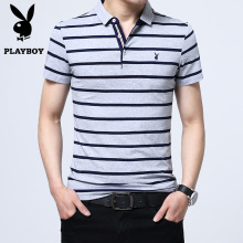 花花公子夏季新款男士短袖t恤衬衫翻领商务polo衫修身青年体恤潮