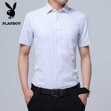 花花公子男士短袖衬衫韩版修身商务休闲青年免烫简约衬衣男衬衫潮