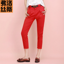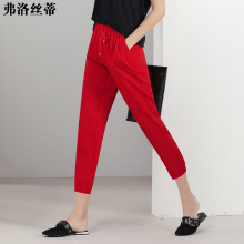 弗洛丝蒂红色薄款哈伦裤潮九分裤时尚女裤修身小脚裤女夏款休闲裤