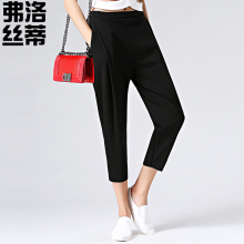 春夏新款哈伦裤女裤黑色九分裤小脚裤子高腰萝卜裤宽松束脚休闲裤