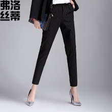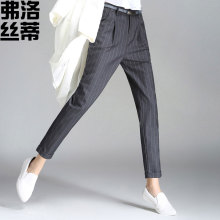 欧美竖条纹哈伦裤新款休闲裤西裤女春秋小脚裤条纹九分裤FS95018