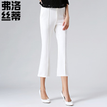欧美时尚九分女裤微喇裤复古喇叭裤夏季新款七分裤修身显瘦休闲裤