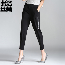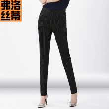 弗洛丝蒂黑白竖条纹九分裤女休闲小脚裤欧美显瘦秋冬新款FD91038