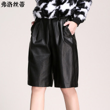 复古高腰宽松皮短裤女秋冬时尚新款阔腿大码松紧休闲五分裤PU皮裤