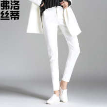 百搭秋季显瘦九分裤西裤白色女裤铅笔裤新款小脚裤大码黑色休闲裤