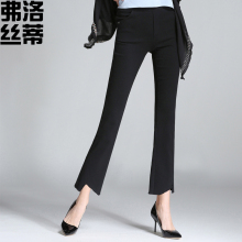 春秋新款九分喇叭裤欧美复古休闲裤九分裤黑色微喇裤修身显瘦女裤