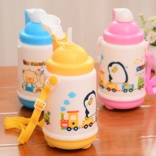 宝宝保温杯带吸管背带学饮杯儿童保温杯带吸管背带婴儿吸水杯包邮