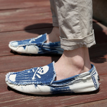 夏天豆豆鞋男韩版青少年乞丐帆船鞋潮流百搭懒人鞋牛仔骷髅头布鞋